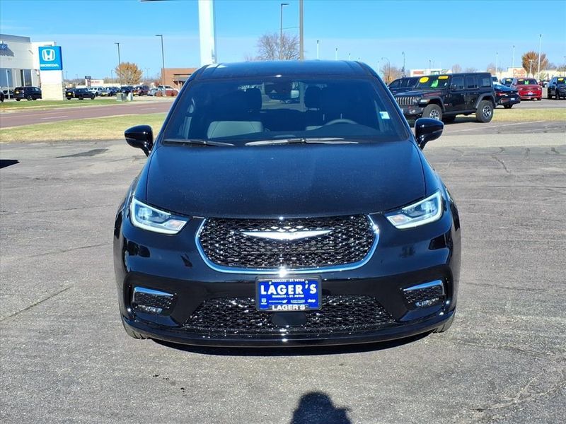 Lager's of Mankato is proud to present this 2026 Chrysler Pacifica Select MOPAR Splash Guards - Vehicle Set (Front Splash Guards and Rear Splash Guards), Quick Order Package 27L, 10.1'' Touchscreen Display, 18'' x 7.5'' Painted Aluminum Wheels, 3.73 Axle Ratio, 3rd row seats: split-bench, 4-Wheel Disc Brakes, 4G LTE Wi-Fi Hot Spot, 6 Speakers, ABS brakes, Air Conditioning, Alloy wheels, AM/FM/SiriusXM radio:, Apple CarPlay, Apple CarPlay/Android Auto, Auto-dimming Rear-View mirror, Automatic temperature control, AWD Suspension, Black Seats, Brake assist, Bumpers: body-color, Caprice Leatherette Bucket Seats, Compass, Connectivity - US/Canada, Delay-off headlights, Disassociated Touchscreen Display, Driver door bin, Driver vanity mirror, Driver's Seat Mounted Armrest, Dual front impact airbags, Dual front side impact airbags, Electronic Stability Control, Emergency communication system: Chrysler Connect, For Details, Visit DriveUconnect.com, Four wheel independent suspension, Front anti-roll bar, Front Bucket Seats, Front dual zone A/C, Front fog lights, Front reading lights, Fully automatic headlights, Garage door transmitter, Google Android Auto, GPS Antenna Input, Heated door mirrors, Heated front seats, Heated steering wheel, Illuminated entry, Integrated Active Noise Cancellation, Integrated Center Stack Radio, Knee airbag, Low tire pressure warning, Memory seat, Occupant sensing airbag, Outside temperature display, Overhead airbag, Overhead console, Panic alarm, ParkView Rear Back-Up Camera, Passenger door bin, Passenger seat mounted armrest, Passenger vanity mirror, Power door mirrors, Power driver seat, Power Liftgate, Power steering, Power windows, Radio data system, Radio: Uconnect 5 w/10.1'' Display, Rain sensing wipers, Rear air conditioning, Rear reading lights, Rear window defroster, Rear window wiper, Reclining 3rd row seat, Remote keyless entry, Security system, Speed control, Split folding rear seat, Spoiler, Steering wheel mounted audio controls, Tachometer, Telescoping steering wheel, Tilt steering wheel, Traction control, Trip computer, Turn signal indicator mirrors, USB Host Flip, Variably intermittent wipers, and VoltmeteR. 2026 Chrysler Pacifica Select AWD Diamond Black Crystal Pearlcoat