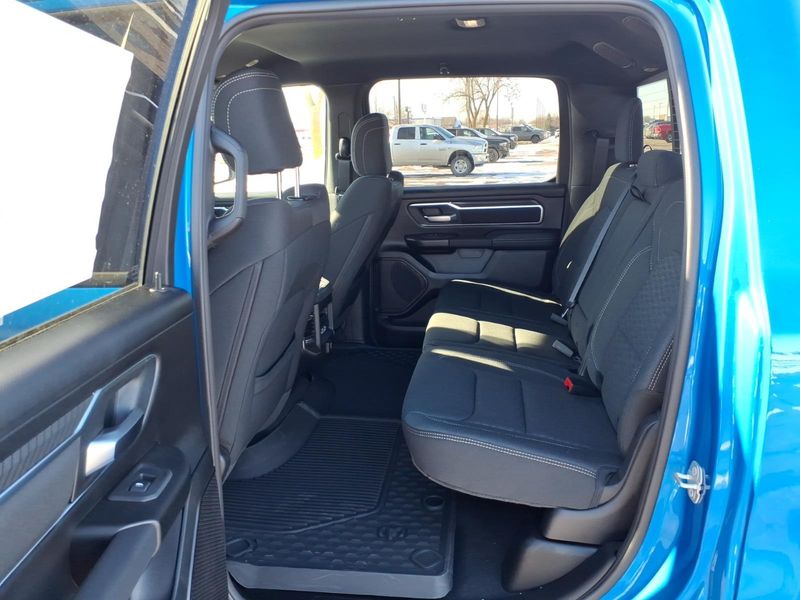 The Ram 1500 Big Horn/Lone Star delivers powerful performance, advanced tech, and premium comfort, making it ideal for work, towing, or weekend adventures. With the Night Edition styling, bold Hydro Blue Pearlcoat, and versatile interior features, this truck combines capability and style like no other.