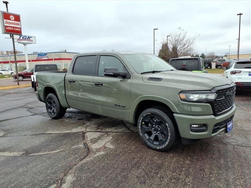 Lager's of Mankato is proud to present this 2026 Ram 1500 Big Horn/Lone Star Big Horn Level 2 Equipment Group (115V Auxiliary Power Outlet, 115V Auxiliary Rear Power Outlet, 12'' Touchscreen Display, 2nd Row in Floor Storage Bins, 3 Rear Seat Head Restraints, 4 Way Front Headrests, 400W Inverter, 4G LTE Wi-Fi Hot Spot, 9 Amplified Speakers with Subwoofer, Air Conditioning ATC with Dual Zone Control, Apple CarPlay, Auto Power-Folding Mirrors, Auto-Dimming Exterior Driver Mirror, Auto-Dimming Rear-View Mirror, Black Exterior Mirrors, Black Premium Power Mirrors, Body Color Fender Flares, Bucket Seats, Center Console Parts Module, Cluster 7.0'' TFT Color Display, Configurable Drive Mode, Connected Travel and Traffic Services, Connectivity - US/Canada, Convex Wide-Angle Exterior Mirror Insert, Deluxe Cloth Bucket Seats, Disassociated Touchscreen Display, Exterior Mirrors Courtesy Lamps, Exterior Mirrors with Heating Element, Exterior Mirrors with Supplemental Signals, Front Seat Back Map Pockets, Full Length Floor Console, Global Telematics Box Module, Glove Box Lamp, Google Android Auto, GPS Antenna Input, GPS Navigation, HD Radio, Heated Front Seats, Heated Steering Wheel, Integrated Center Stack Radio, Integrated Voice Command with Bluetooth, Leather Wrapped Steering Wheel, LED Dome Lamp with on/Off Switch, LED Footwell Lighting, Manual Adjust 4-Way Front Passenger Seat, Media Hub with 2 Charge Only USBs, Overhead LED Lamps, Power 2-Way Driver Lumbar Adjust, Power Adjust 8-Way Driver Seat, Power Adjustable Pedals, Premium Overhead Console, Radio: Uconnect 5 Navigation with 12.0'' Display, Rear 60/40 Folding Seat, Rear Center Armrest, Rear Power Sliding Window, Rear Window Defroster, Remote Tailgate Release, Security Alarm, SiriusXM Radio Service, SiriusXM with 360L, Steering Wheel Mounted Audio Controls, Sun Visors with Illuminated Vanity Mirrors, Universal Garage Door Opener, and USB Host Flip), Night Edition (Accent Color Door Handles, Accent Color Premium Power Mirrors, Accent Color Tailgate Handle, Anti-Spin Differential Rear Axle, Black Exterior Truck Badging, Black Headlamp Bezels, Black Interior Accents, Black Painted Exterior Mirrors Caps, Black Tail Lamp Bezels, Body Color Front Bumper, Body Color Rear Bumper with Step Pads, Dual Exhaust with Black Tips, Grille Black Surround Black Mesh, RAM Grille Badge - Black, and Wheels: 20'' x 9.0'' Aluminum Painted Clad), Quick Order Package 21Z Big Horn, 4-Wheel Disc Brakes, 48V Belt Starter Generator, 6 Speakers, ABS brakes, Air Conditioning, Alloy wheels, AM/FM radio, Apple CarPlay/Android Auto, Auto High-beam Headlights, Brake assist, Bumpers: chrome, Cloth Bucket Seats, Cluster 12'' TFT Color Display, Compass, Delay-off headlights, Driver door bin, Dual front impact airbags, Dual front side impact airbags, Electronic Stability Control, Front anti-roll bar, Front Bucket Seats, Front Center Armrest w/Storage, Front fog lights, Front License Plate Bracket, Front reading lights, Front wheel independent suspension, Fully automatic headlights, Heated door mirrors, Illuminated entry, Low tire pressure warning, Manual Adjust 4-Way Driver Seat, Manual Folding Exterior Mirrors, Manufacturer's Statement of Origin, MOPAR Front and Rear Rubber Floor Mats, Occupant sensing airbag, Outside temperature display, Overhead airbag, Overhead console, Panic alarm, ParkView Rear Back-Up Camera, Passenger door bin, Passenger vanity mirror, Power door mirrors, Power steering, Power windows, Radio data system, Radio: Uconnect 5 W with 8.4'' Display, RAM Grille Badge - Chrome, Rear anti-roll bar, Rear step bumper, Rear Underseat Compartment Storage, Rear Wheelhouse Liners, Remote keyless entry, Speed control, Supplier Part Tracking (J-1), Tachometer, Telescoping steering wheel, Tilt steering wheel, Traction control, Trailer Brake Control, Trip computer, Variably intermittent wipers, and Voltmeter. 2026 Ram 1500 Big Horn/Lone Star 4WD Canyon Lake