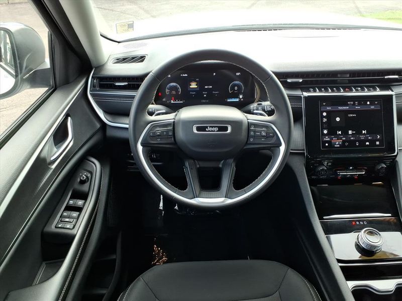 Sitting on 18-inch fully painted aluminum wheels, this Grand Cherokee L features molded-in-color black/gloss black roof rails, body-color bumpers, and heated mirrors that enhance both utility and style. Its 4WD system and Normal Duty Suspension ensure confident handling in all conditions.