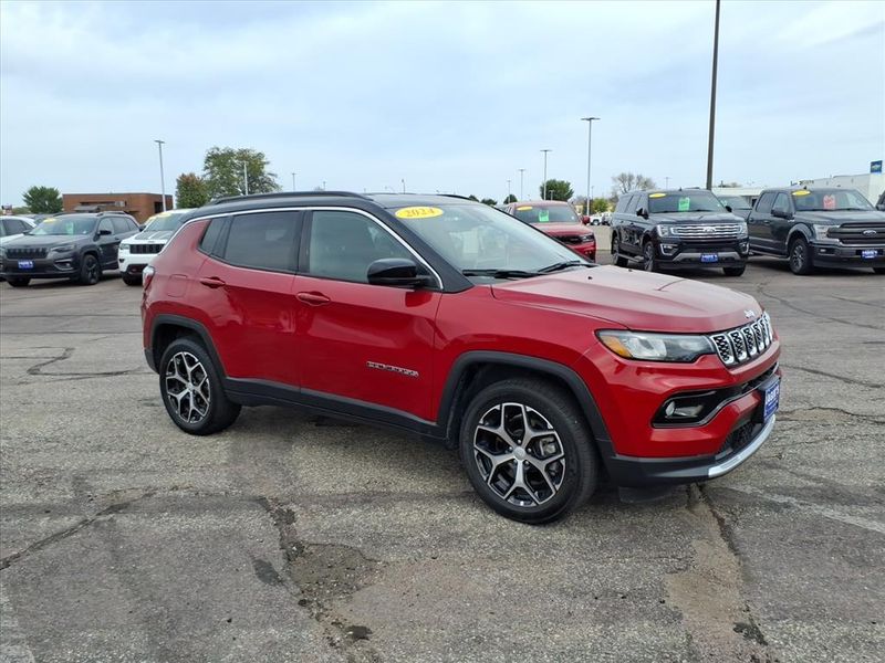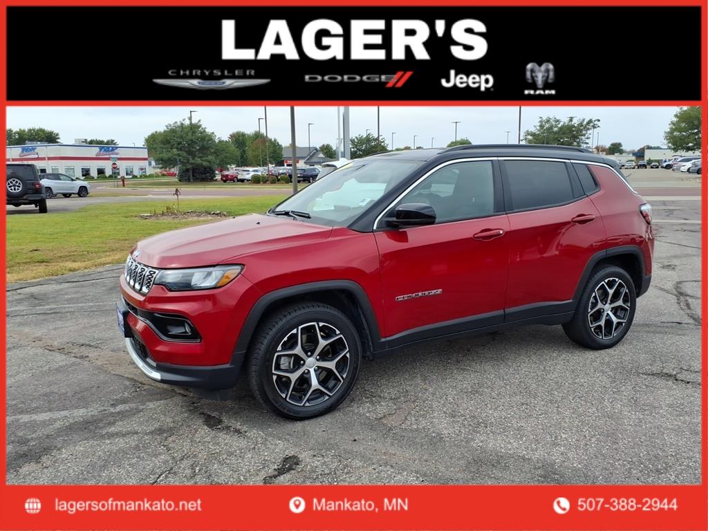Lagers of Mankato is proud to present this stylish and capable 2024 Jeep Compass Limited 4WD, finished in stunning Red Hot Pearlcoat. Powered by a 2.0L I4 DOHC engine paired with an 8-speed automatic transmission, this Compass delivers confident performance, refined comfort, and impressive fuel economy at 24/32 MPG (City/Highway).