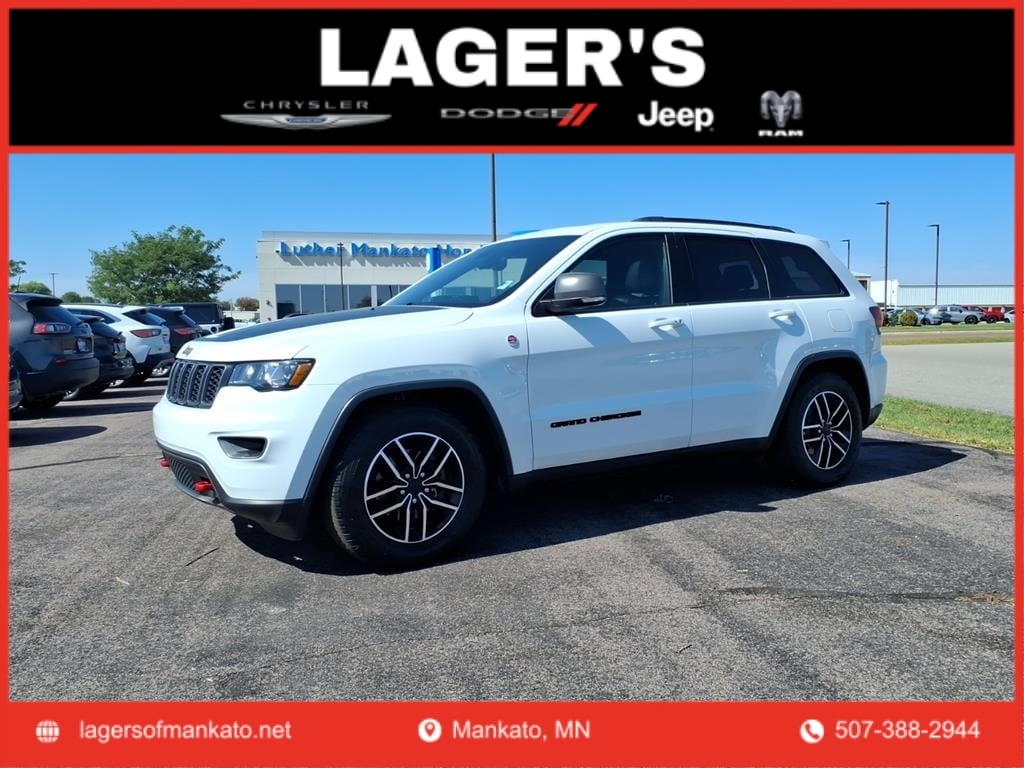 Lager's of Mankato is proud to present this 2020 Jeep Grand Cherokee Trailhawk Quick Order Package 2BJ, 4WD, 1-Year SiriusXM Guardian Trial, 10 Speakers, 3.45 Rear Axle Ratio, 4-Wheel Disc Brakes, 4G LTE Wi-Fi Hot Spot, 8.4 Touchscreen, ABS brakes, Air Conditioning, Alloy wheels, AM/FM/SiriusXM radio:, Anti-whiplash front head restraints, Apple CarPlay, Apple CarPlay/Android Auto, Audio memory, Auto-dimming door mirrors, Auto-dimming Rear-View mirror, Auto-leveling suspension, Automatic temperature control, Brake assist, Bumpers: body-color, Compass, Delay-off headlights, Driver door bin, Driver vanity mirror, Dual front impact airbags, Dual front side impact airbags, Electronic Stability Control, Emergency communication system: SiriusXM Guardian, Four wheel independent suspension, Front anti-roll bar, Front Bucket Seats, Front Center Armrest w/Storage, Front dual zone A/C, Front fog lights, Front License Plate Bracket, Front reading lights, Fully automatic headlights, Garage door transmitter, Google Android Auto, GPS Antenna Input, GPS Navigation, HD Radio, Heated door mirrors, Heated front seats, Heated rear seats, Heated steering wheel, Illuminated entry, Integrated Center Stack Radio, Integrated Voice Command w/Bluetooth, Knee airbag, Leather Shift Knob, Low tire pressure warning, Memory seat, Navigation System, Normal Duty Suspension - Increased Travel, Occupant sensing airbag, Outside temperature display, Overhead airbag, Overhead console, Panic alarm, ParkView Rear Back-Up Camera, Passenger door bin, Passenger vanity mirror, Power door mirrors, Power driver seat, Power Liftgate, Power moonroof, Power passenger seat, Power steering, Power windows, Radio data system, Radio: Uconnect 4C Nav w/8.4 Display, Rear anti-roll bar, Rear reading lights, Rear seat center armrest, Rear window defroster, Rear window wiper, Remote keyless entry, Security system, SiriusXM Satellite Radio, SiriusXM Traffic Plus, SiriusXM Travel Link, Speed control, Speed-sensing steering, Spe