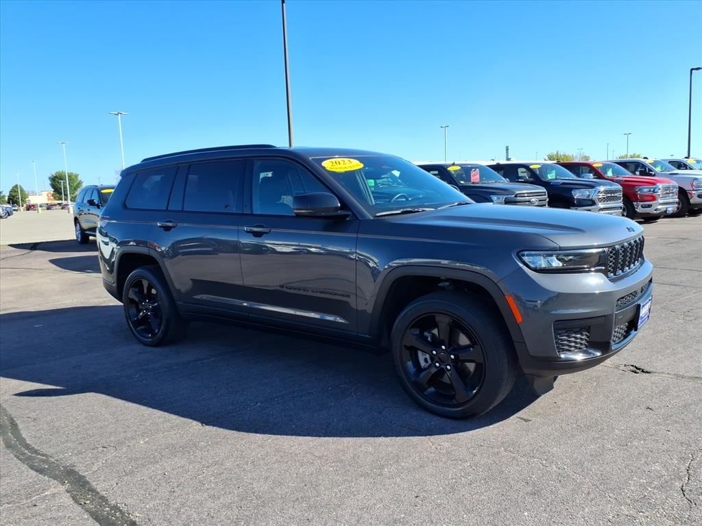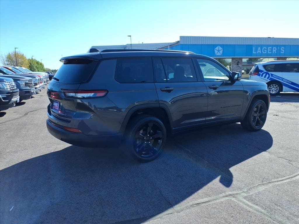 Lager's of Mankato is proud to present this 2023 Jeep Grand Cherokee L Altitude Altitude Appearance Package, Quick Order Package 23B Altitude (115V Auxiliary Power Outlet, 3rd Row Charge-Only USB Ports, Black Headliner, Capri Leatherette/Suede Seats, Delete Laredo Badge, Gloss Black Exterior Accents, Heated Front Seats, Heated Steering Wheel, Molded In Color Black/Gloss Black Roof Rails, Power Liftgate, Rain Sensitive Windshield Wipers, Remote Start System, Selectable Tire Fill Alert, Wheels: 18 x 8.0 Fully Painted Aluminum 1, and Wireless Charging Pad), 3.45 Rear Axle Ratio, 3rd row seats: split-bench, 4-Wheel Disc Brakes, 6 Speakers, ABS brakes, Air Conditioning, Alloy wheels, Anti-whiplash front head restraints, Automatic temperature control, Brake assist, Bumpers: body-color, Cloth Seats, Compass, Delay-off headlights, Driver door bin, Driver vanity mirror, Dual front impact airbags, Dual front side impact airbags, Electronic Stability Control, Emergency communication system, Four wheel independent suspension, Front anti-roll bar, Front Bucket Seats, Front Center Armrest w/Storage, Front dual zone A/C, Front License Plate Bracket, Front reading lights, Fully automatic headlights, Heated door mirrors, Illuminated entry, Knee airbag, Low tire pressure warning, Manual Fold Seatbacks, Normal Duty Suspension, Occupant sensing airbag, Outside temperature display, Overhead airbag, Overhead console, Panic alarm, ParkView Rear Back-Up Camera, Passenger door bin, Passenger vanity mirror, Power door mirrors, Power driver seat, Power steering, Power windows, Radio data system, Radio: Uconnect 5 w/8.4 Display, Rear air conditioning, Rear anti-roll bar, Rear reading lights, Rear window defroster, Rear window wiper, Reclining 3rd row seat, Remote keyless entry, Security system, Speed control, Speed-Sensitive Wipers, Split folding rear seat, Spoiler, Steering wheel mounted audio controls, Tachometer, Telescoping steering wheel, Tilt steering wheel, Traction control, Trip comput